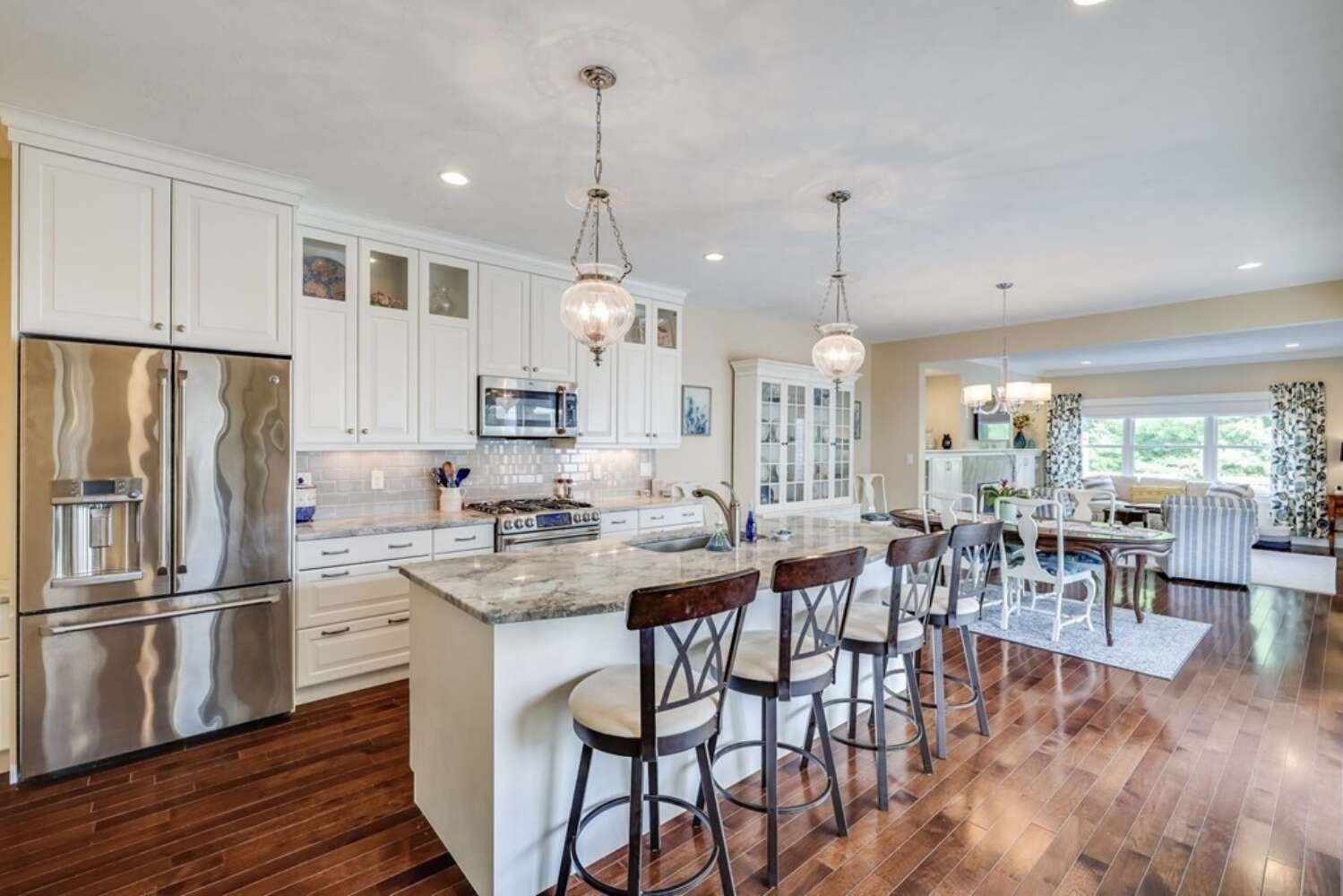 There is so much to love about this PRISM award winning kitchen design. (Those pendants, that refrigerator!) It's from the team behind one of the latest new home neighborhoods at The Pinehills, Flagstone, by Whitman Signature, where you can build you own dream kitchen AND home!