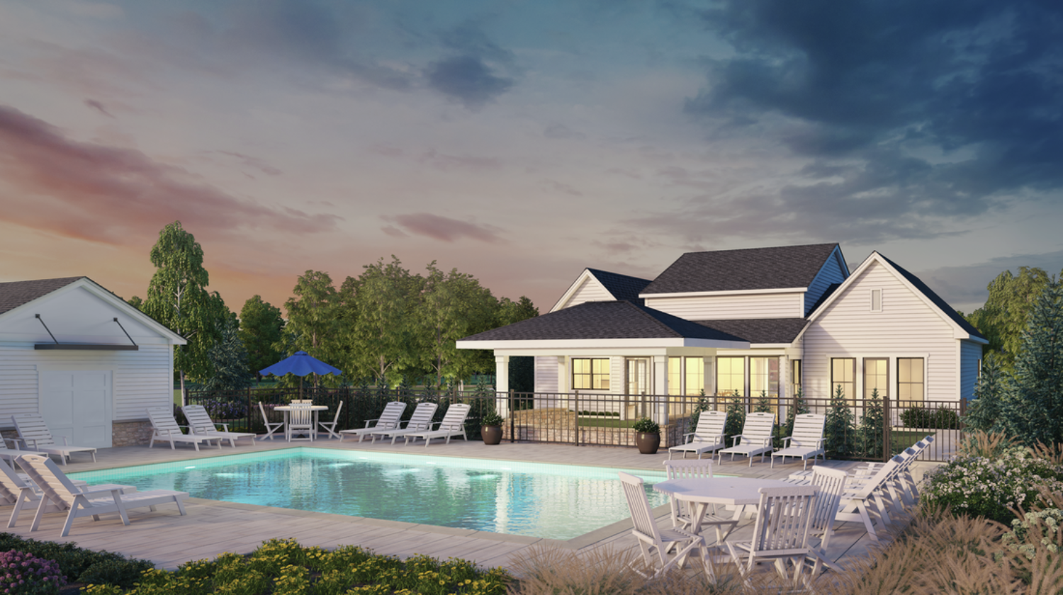 With a nod to the importance of social connection in a neighborhood, Owls Nest will include private community amenities showcasing a clubhouse with fitness center, pool, common spaces for gatherings, bocce courts and neighborhood mail area.