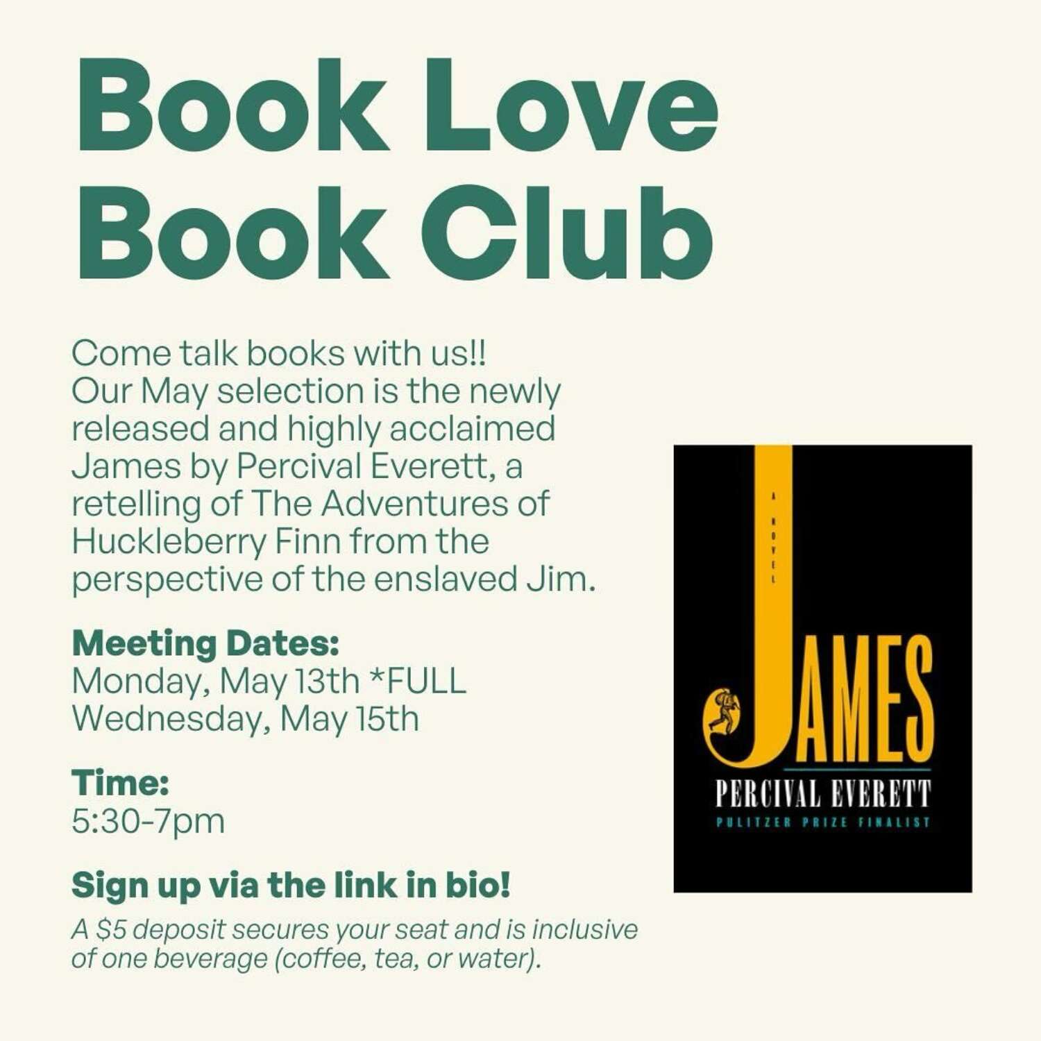 May Book Club selection is the newly released and highly acclaimed James by Percival Everett, a retelling of The Adventures of Huckleberry Finn from the perspective of the enslaved Jim.