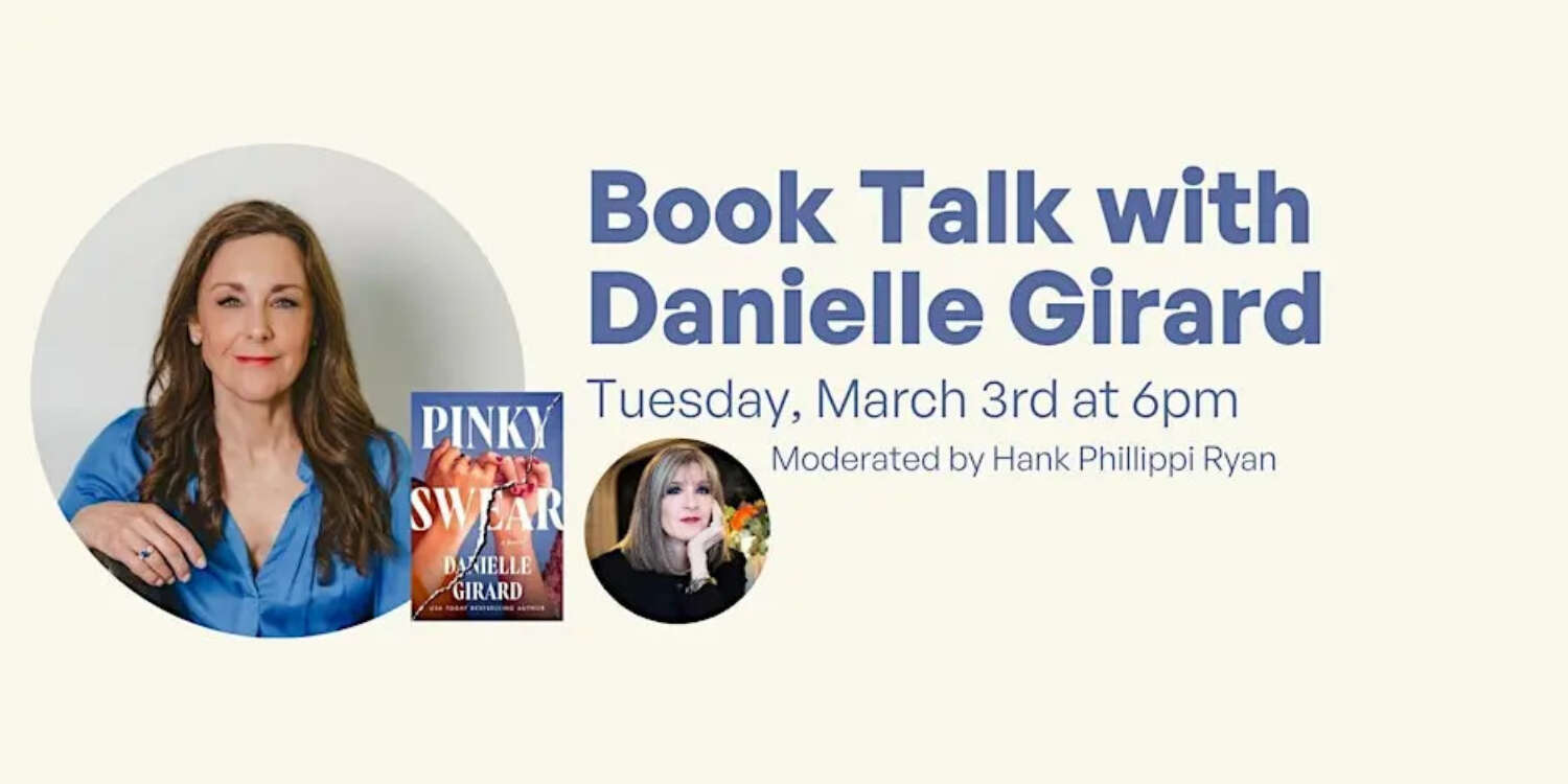 Danielle will be joined in conversation at Book Love by Hank Phillippi Ryan for an evening featuring her latest release, Pinky Swear. In this pulse-pounding thriller, a young woman's surrogate--the childhood best friend she recently reconnected with--disappears just days before the baby's due date, leading to a frantic hunt that uncovers dark truths about the years they've spent apart. The book talk will be followed by a Q/A and book signing.