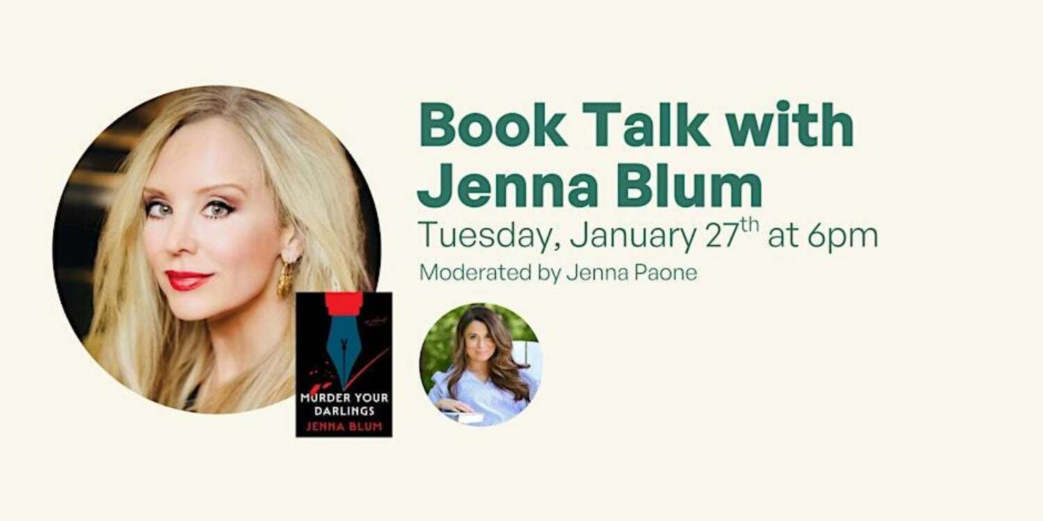 Join Book Love for an engaging evening with bestselling author Jenna Blum as she discusses her forthcoming novel, Murder Your Darlings (out January 13th). Blum will be in conversation with Jenna Paone for a lively discussion about her latest work. The evening will begin with a 30-minute book talk, followed by an audience Q&A and a book signing.