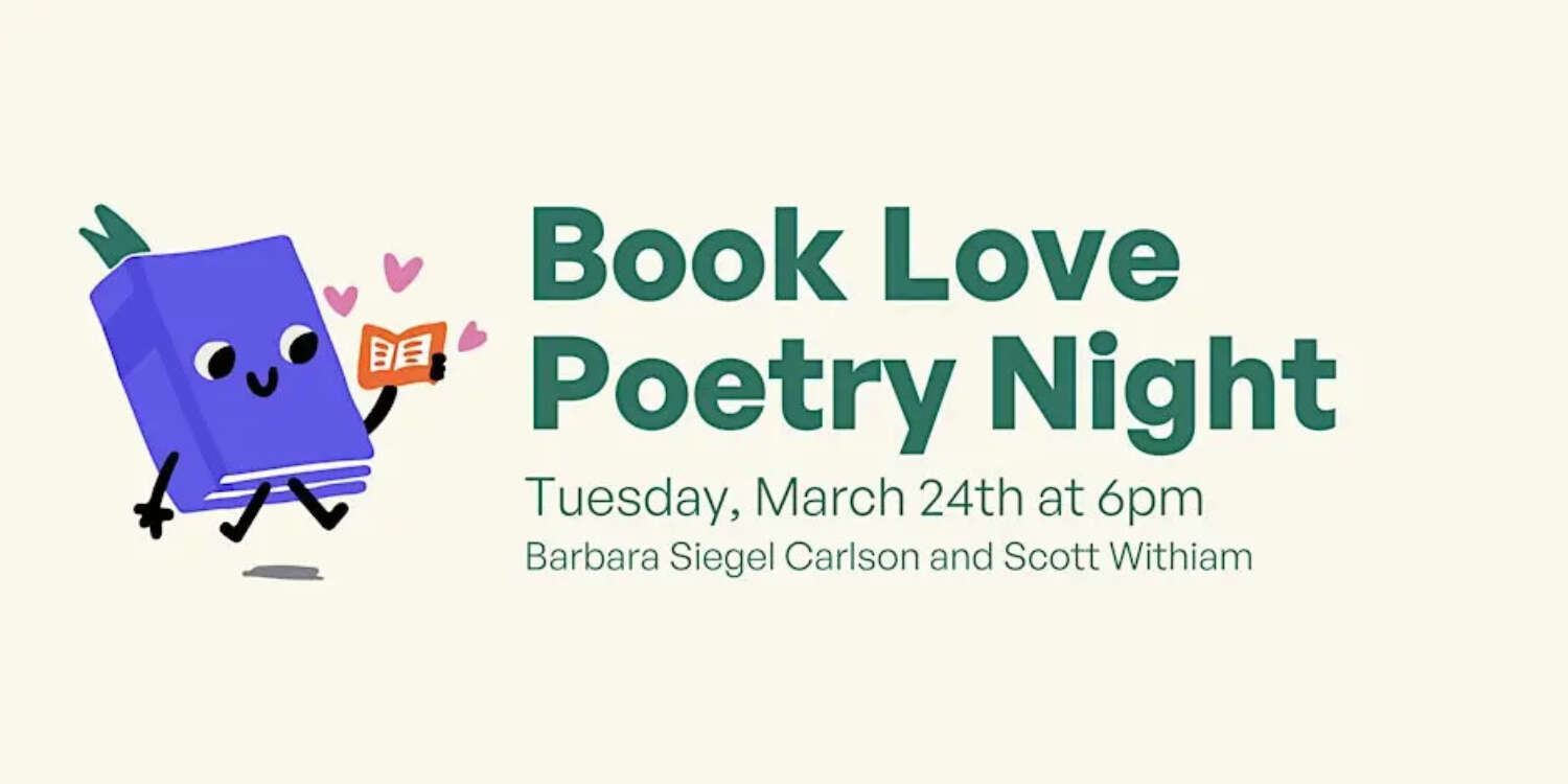 Join us for an inspiring evening of spoken word and poetic expression at our Poetry Night, featuring Barbara Siegel Carlson and Scott Withiam. Each poet will share about 10 minutes of their work. Following the event, there will be time for book signing and mingling.