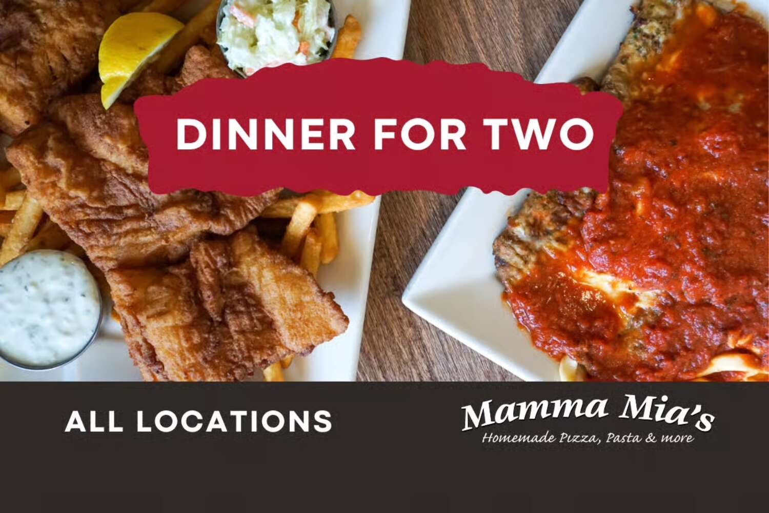 Enjoy a bottle of wine, two salads or soups and two entrees from our Dinner for Two menu on Tuesdays after 4pm for only $49.99. (Dine-in only.)