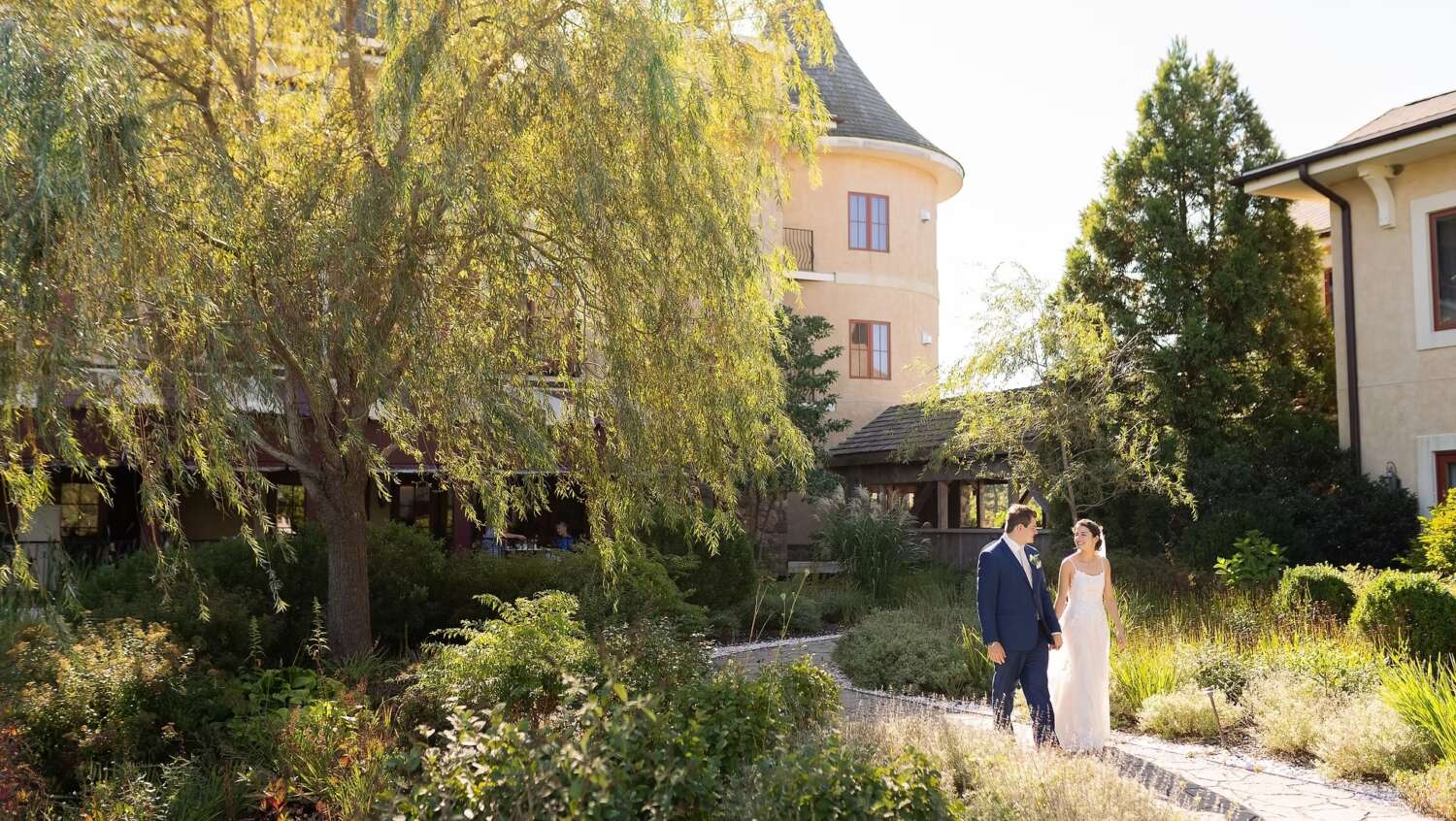 Tour unique event spaces, with beautiful koi ponds and gardens which were designed to evoke the warmth, elegance, and comfort of a private estate in the countryside of France.