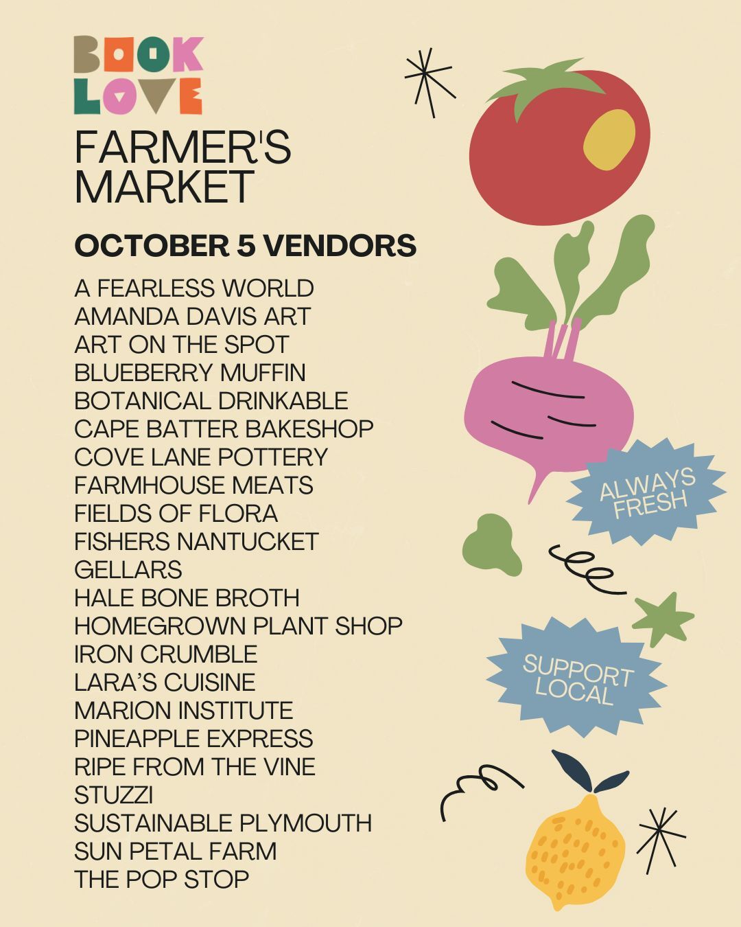 Join Book Love on May 25, June 1, July, 6, August 3, September 7, and October 5 for a delightful blend of fresh, locally-sourced produce, handmade goods, and community spirit at the Book Love Farmer's Market!
