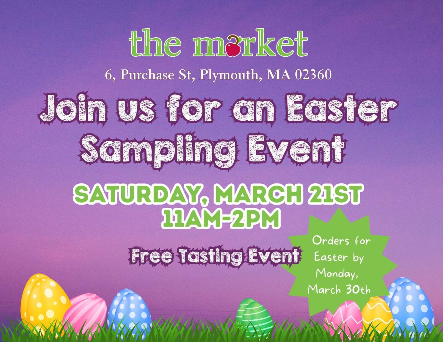 Join The Market on Saturday, March 21 from 11am to 2pm for a free tasting of our favorite Easter dishes. Sample seasonal treats and get inspired for your holiday table!